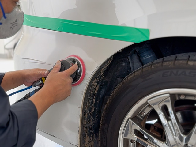 単なる簡易塗装ではなく、本格板金塗装技術で、小さなキズ修理でも周辺の面を大きく捉え、修理跡がわからないように、丁寧に…丁寧に…施工いたします。