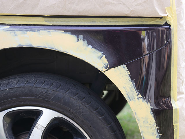 単なる簡易塗装ではなく、本格板金塗装技術で、小さなキズ修理でも周辺の面を大きく捉え、修理跡がわからないように、丁寧に…丁寧に…施工いたします。